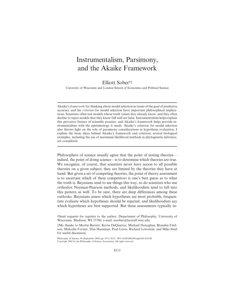 Sober’s topic — simplicity, parsimony and realism — could have been an adventure through the garden of ideas: